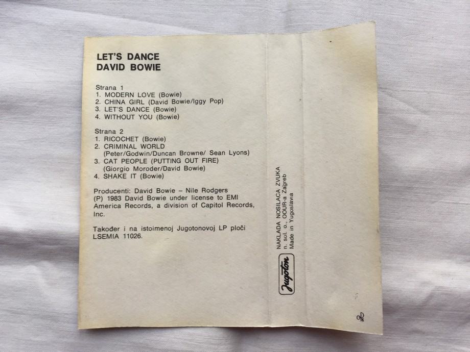 David Bowie – Let's Dance, glazbena kaseta, Jugoton 1983.