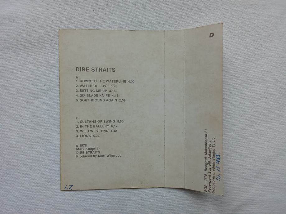 Dire Straits – prvi album, glazbena kaseta, PGP RTB 1980.
