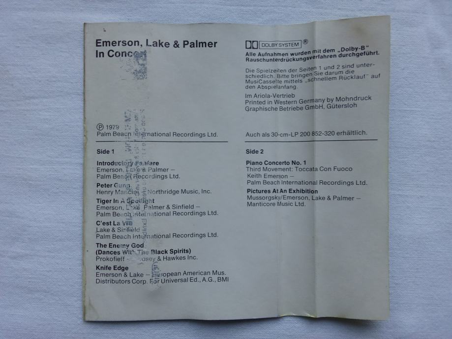 Emerson, Lake & Palmer – In Concert, Ariola 1979., Njemačka