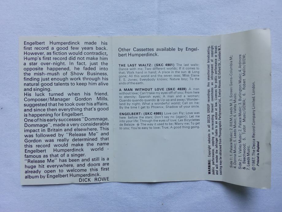 Engelbert Humperdinck – Release Me, glazbena kaseta, Decca, UK