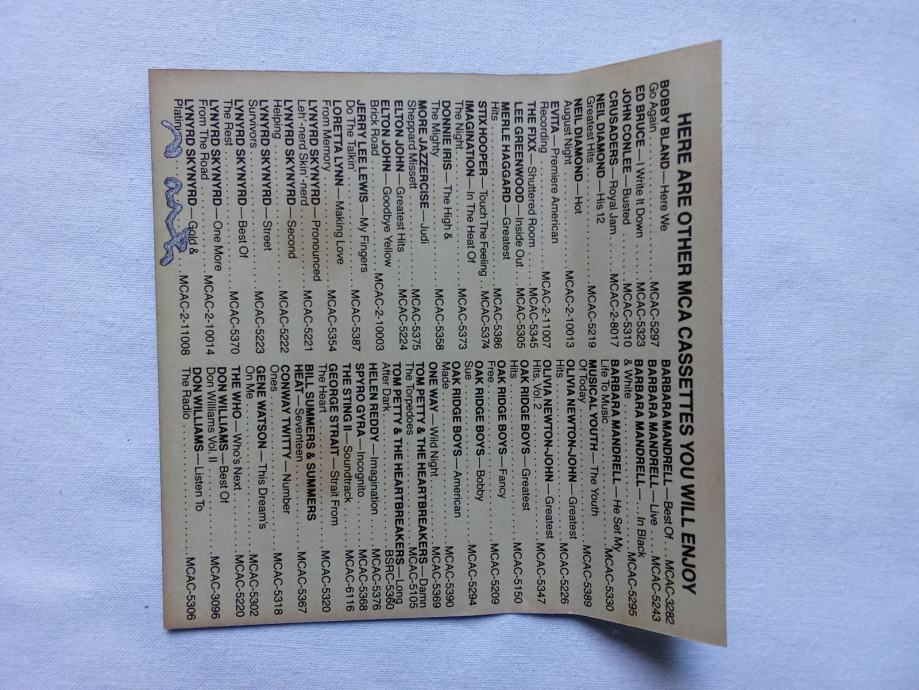 Izdanje: MCA Records 1983., S.A.D. Pogledajte priložene fotografije oglašenog primjerka i YouTube video, koji sadrži iste fotografije veće razlučivosti i autentičnu snimku zvuka s prve strane, napravljenu amaterskom opremom. Kaseta je u potpunosti slušana neposredno prije oglašavanja, brzina reprodukcije je stalno normalna, uz približno istu kvalitetu zvuka kakva se čuje u spomenutoj snimci, ovisno o kvaliteti opreme za reprodukciju. Sav sadržaj je originalan, ništa nije ponovo snimljeno ili dodano.