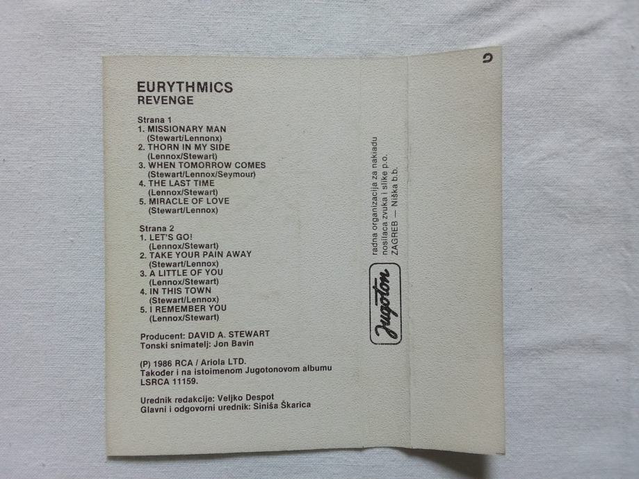 Eurythmics – Revenge, glazbena kaseta, Jugoton 1986.