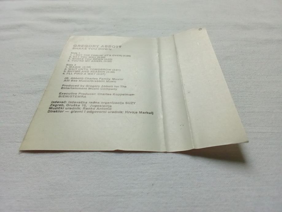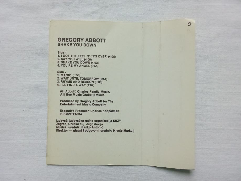 Gregory Abbott – Shake You Down, glazbena kaseta, Suzy 1987.