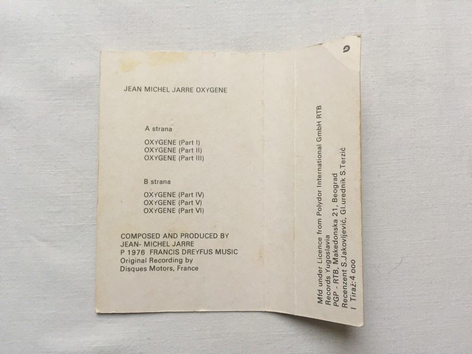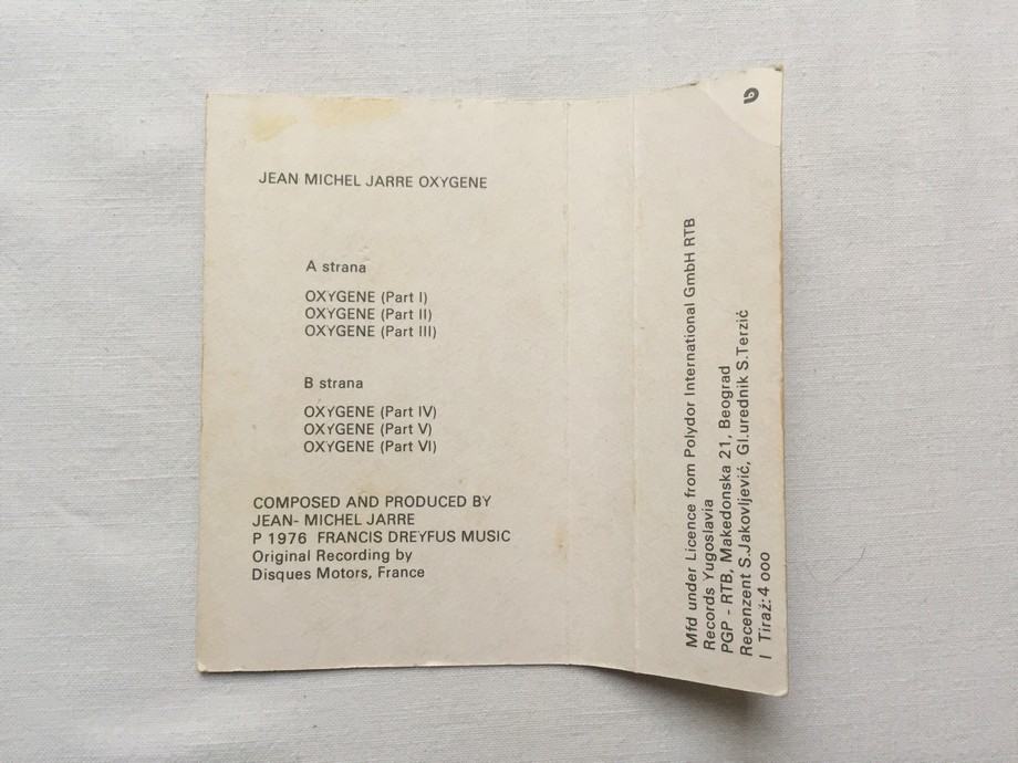 Jean-Michel Jarre – Oxigene, glazbena kaseta, PGP RTB