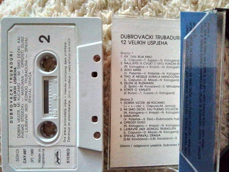 Prodajem odlično očuvanu kazetu Dubrovački trubaduri, 12 najvećih uspjeha;