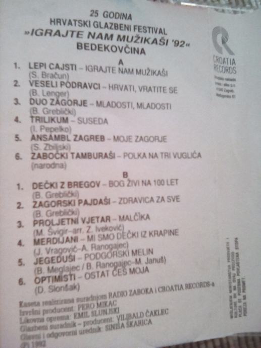 Prodajem tri nikad svirane kazete Festival Bedekovčina, 4 eura /kom;