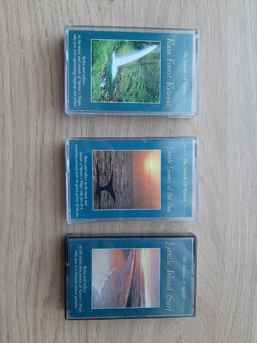 Prodajem komplet od 3 kazete, umirujuća instrumentalna glazba sa pozadinskim zvukovima iz prirode u stanju novoga, slušano možda 2 puta. Ako je preuzimanje osobno može slušna proba kod mene prije kupnje.