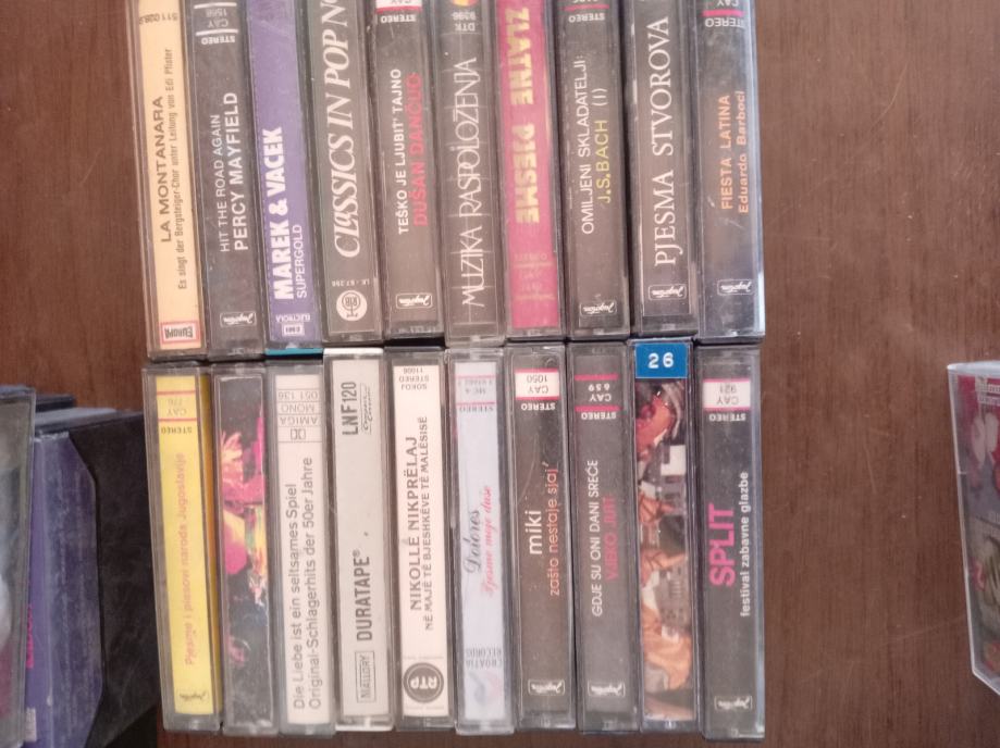 Oko200 originala kazeta sa omotom2eu i oko50za snimanje. Prodajem isklucivo u kompletu. Moguca zamjena za pojacalo. Ploce. Zvucnike. Koznu moto jaknu. Cjena za sve stvar dogovora. Cjena 50komada 1eu komad.
