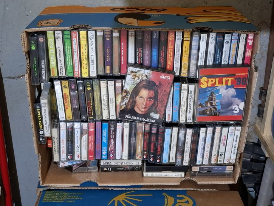 Lot oko 200 kazeta, pretežno HR zabavna muzika, Novi Fosili, Mladen Grdović, Tomislav Ivčić, Zlatko Pejaković, Mladen Grdović, Trio Gušt, Vinko Coce, Thompson, Dražen Zečić, Krunoslav Slabinac, Gibonni, Karan, Oliver, Klape, nešto stranih