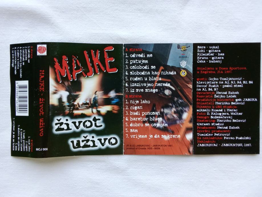 Majke – Život uživo, glazbena kaseta, Jabukaton 1997.
