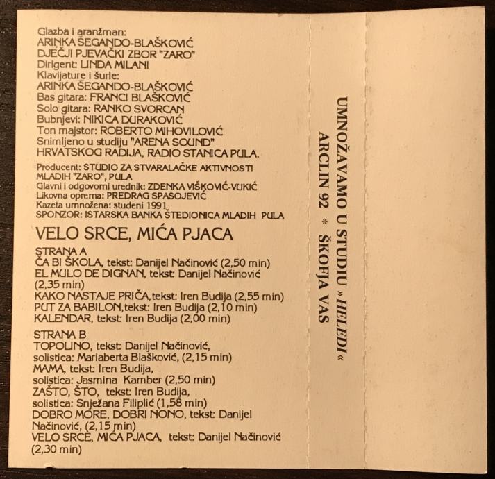 MC / dječji pjevački zbor Zaro / Velo srce, mića pjaca / iz 1991./Pula