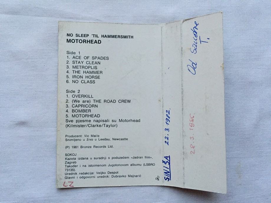 Motörhead – No Sleep 'til Hammersmith, glazbena kaseta, Jugoton 1981.
