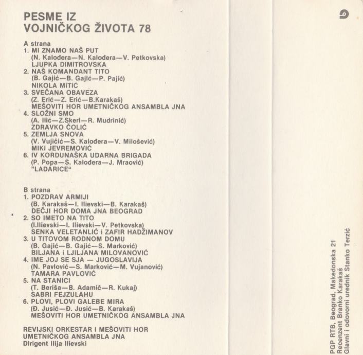 Pesme Iz Vojničkog Života, Čolić, Ljupka, izuzetno rijetko