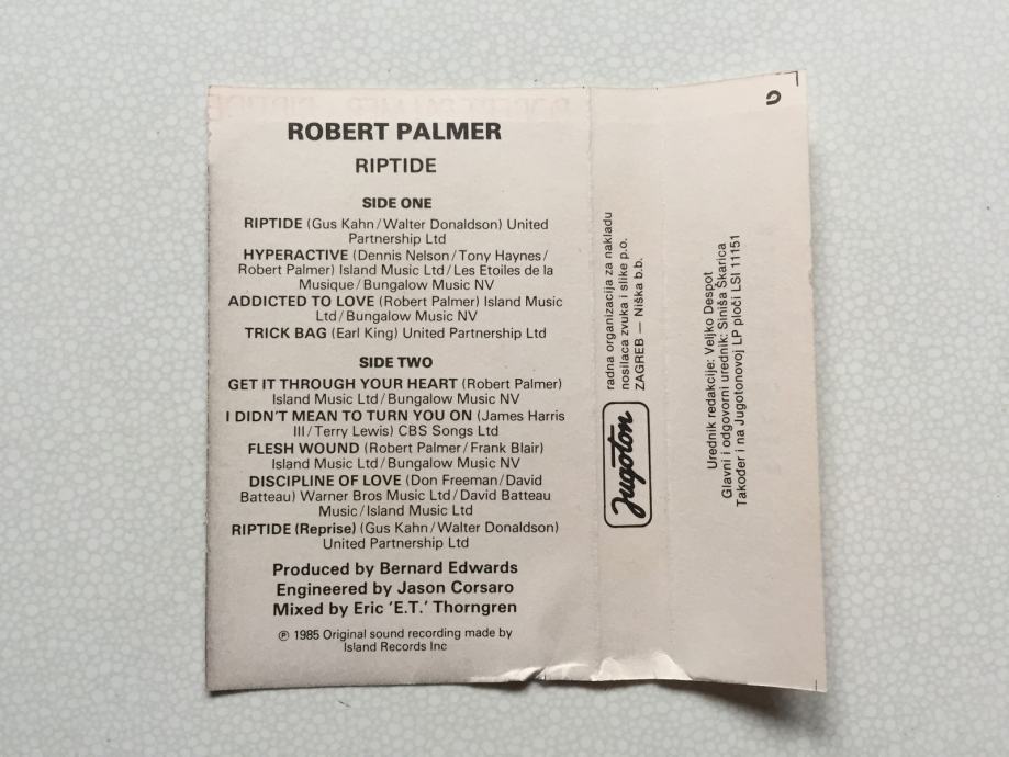 Robert Palmer – Riptide, glazbena kaseta, Jugoton 1985.