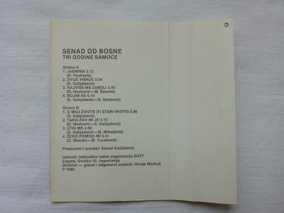 Senad od Bosne – Tri godine samoće, glazbena kaseta, Suzy 1986.