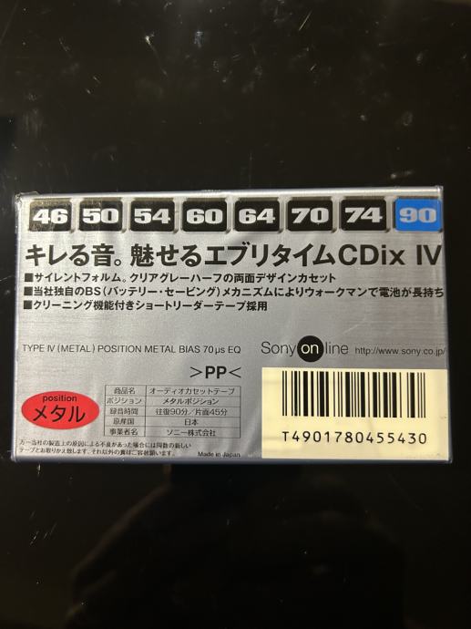 Sony CDix IV metal audio kaseta je visokokvalitetna audio kaseta dizajnirana za profesionalnu i osobnu upotrebu. Proizvedena je u Japanu i ima metalnu prednaponsku formulu tipa IV, poznatu po svojim izvrsnim magnetskim svojstvima i izdržljivosti.