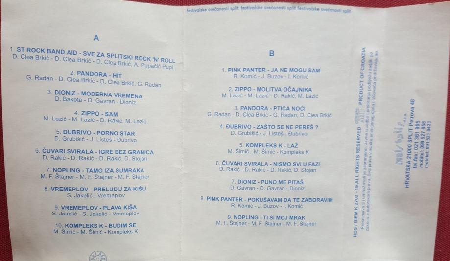 Kompilacija povodom koncerta ujedinjenja Splitske Rock scene 2000 g. Kazeta je odlicno ocuvana. Saljem Postom, Tiskom ili osobno preuzimanje u Splitu.