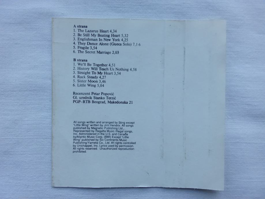 Sting – Nothing Like The Sun, glazbena kaseta, PGP RTB 1987.