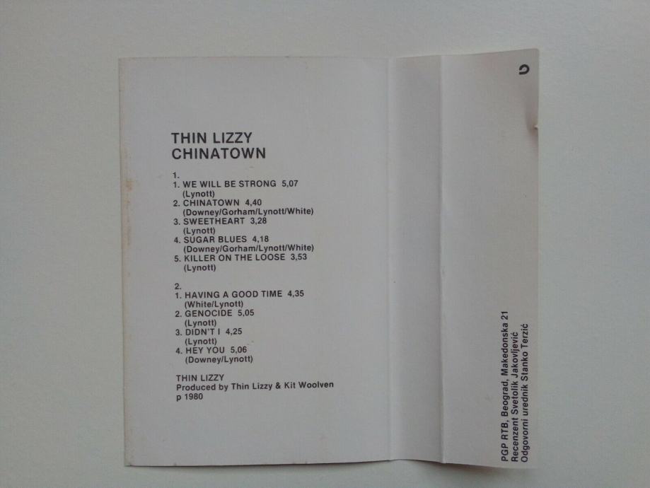 Thin Lizzy – Chinatown, glazbena kaseta, PGP RTB 1981.