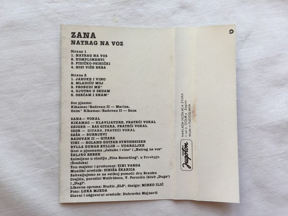 Zana – Natrag na voz, glazbena kaseta, Jugoton 1983.