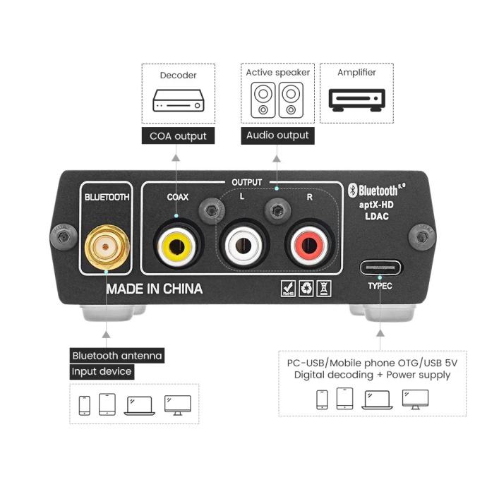 DAC A4 je dobar Hi-Fi adaptor za svu opremu koja nema Bluetooth. Može se koristiti kao pojačalo za slušalice, Bluetooth ulaz za Hi-Fi opremu koje ne podržava Bluetooth. Ja sam ga koristio za streaming Spotifya preko telefona na receiveru za kućno kino (ima koaksijalni digitalni izlaz).