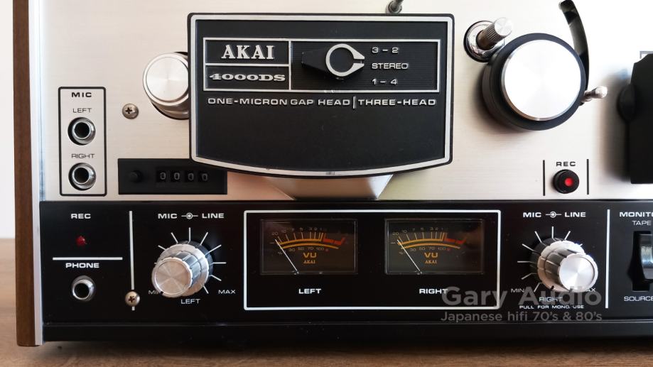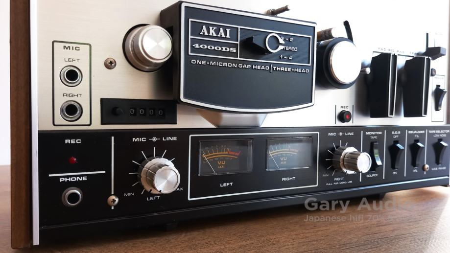 Akaijev kultni magnetofon iz 70-ih. Akai 4000DS je klasični, robusni magnetofon poznat po svojoj pouzdanosti i kvalitetnoj reprodukciji zvuka. Riječ je o četverokanalnom, dvokanalnom stereo snimaču dizajniranom za kolute od 7 inča. Ključne značajke uključuju sustav s tri glave s Akaijevom glavom za reprodukciju s razmakom od jednog mikrona, jedan, visoko učinkovit indukcijski motor i dobro dizajniran zamašnjak za stabilan put vrpce i smanjeno treperenje i vibracije.