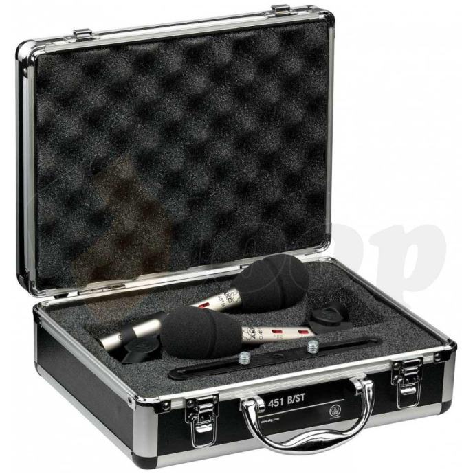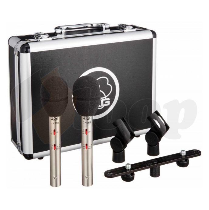 AKG C451 B stereo pair su 2 uparena kondenzatorski mikrofona C451 B male dijafragme. Vrlo prozračnog zvuka i izuzetnih detalja. C451 B nasljednik je svog prethodnika, legendarnog C451 EB+CK1 kapsule. Ručno izrađena kapsula i low-noise preamp elektronika osiguravaju impresivne rezultate u svim uvjetima. Ručno odabrani među tisućama mikrofona uz maksimalno odstupanje 1 dB identične osjetljivosti.