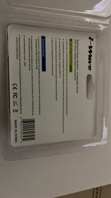 Bluetooth muzički prijemnik za docking s 30pin ( Apple dock connector)