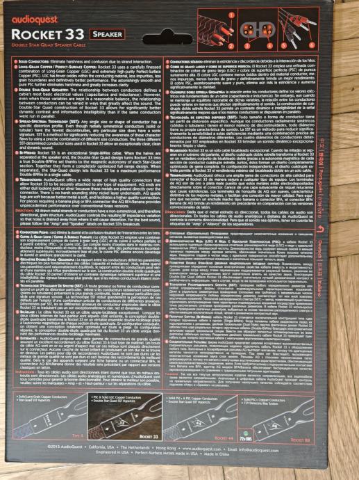 Prodajem vrhunske zvučničke kabele Audioquest Rocket 33, Single wire originalni konektori i originalno pakiranje. Duljina 2x3m, dobro očuvani kao novi. Prodajem po povoljnoj cijeni.