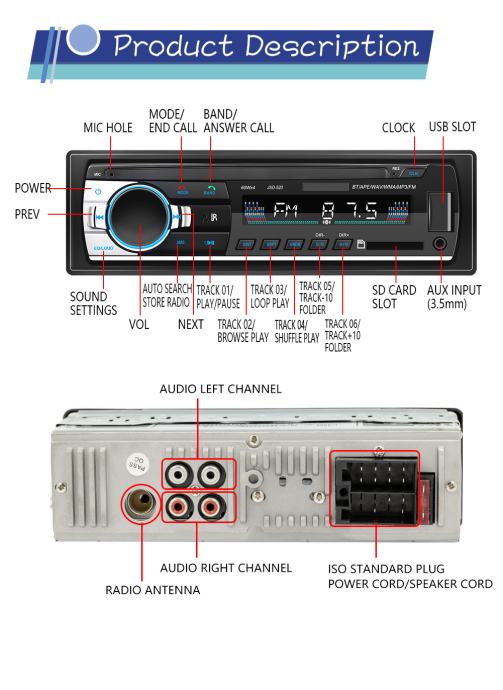 Auto radio MP3/USB/SD/AUX 60Wx4,Mosfet daljinski, bluetooth, handsfree