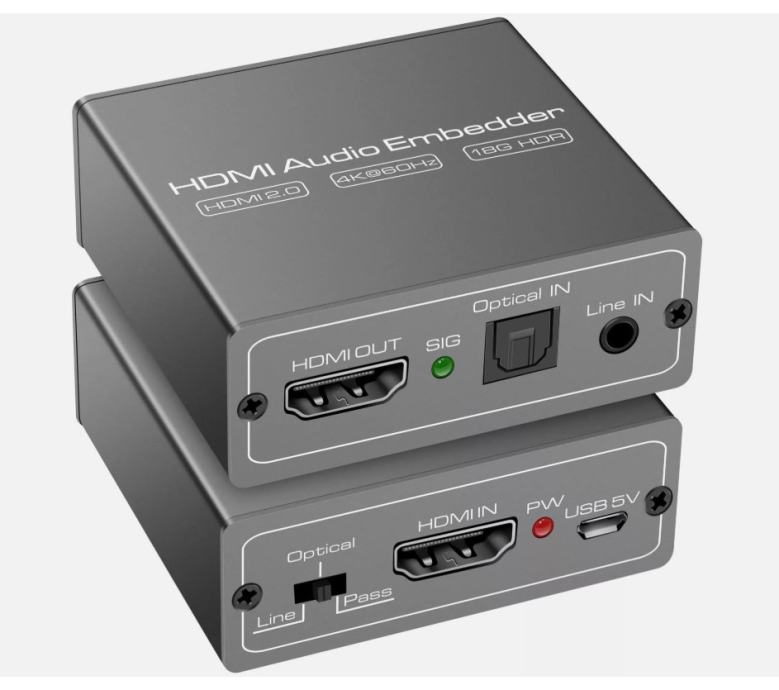 Converter Optical 3.5mm to Hdmi Audio Embedder Inserter Adapter Synth Video Mixer 4k 60Hz