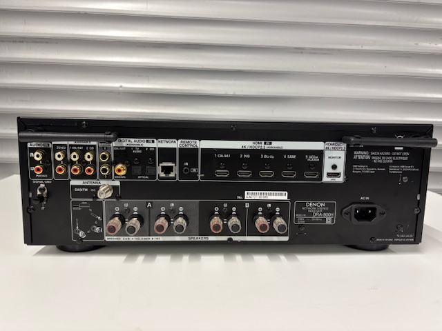 Denon Hi-Fi pojačalo: diskretno pojačanje za lijevi i desni kanal, sa 100 W snage po kanalu (8 ohma, 20Hz – 20kHz, THD: 0,07%, 2-kanalno)