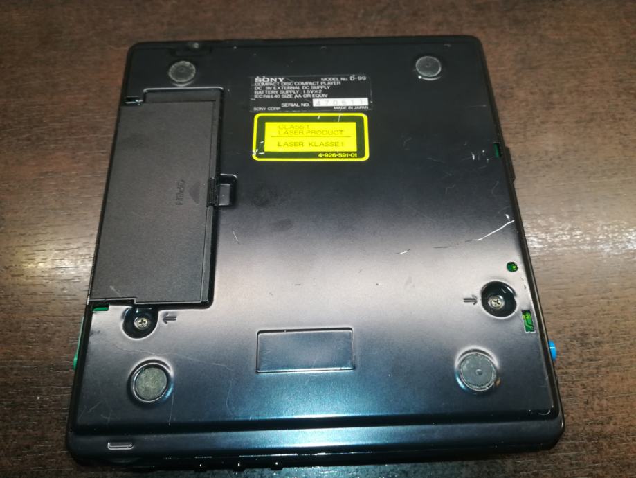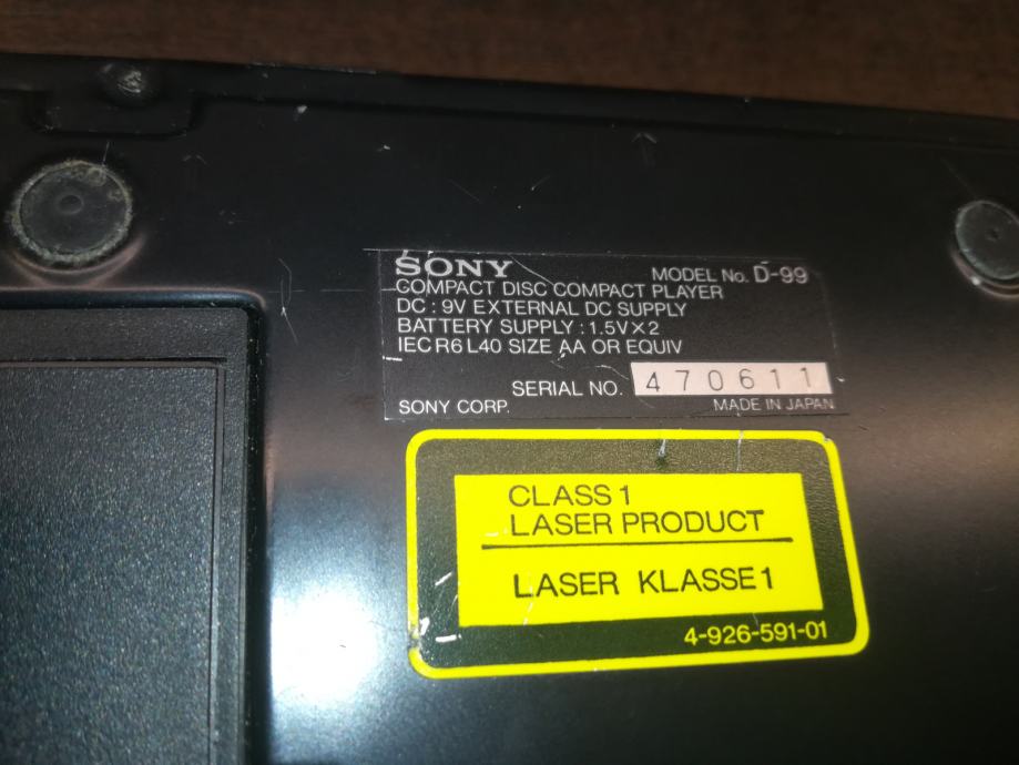 Tehnički ispravan i vrlo očuvan portable CD player Sony D-99 s 1bit DAC. Jako rijedak, a još rjeđi u ispravnom stanju. Uredno očitava CD-R medije snimane na brzinama 4x-8x. Radi uredno na strujni adapter 9V. Ima linijski fiksni 3,5mm phono izlaz i 3,5mm phono izlaz za slušalice s regulacijom glasnoće.
