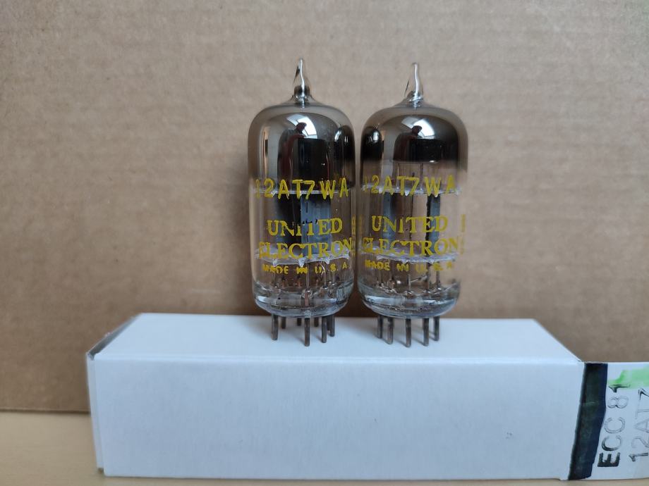 Upareni par 12AT7WA United Electron cijevi američke proizvodnje. Pravi NOS.