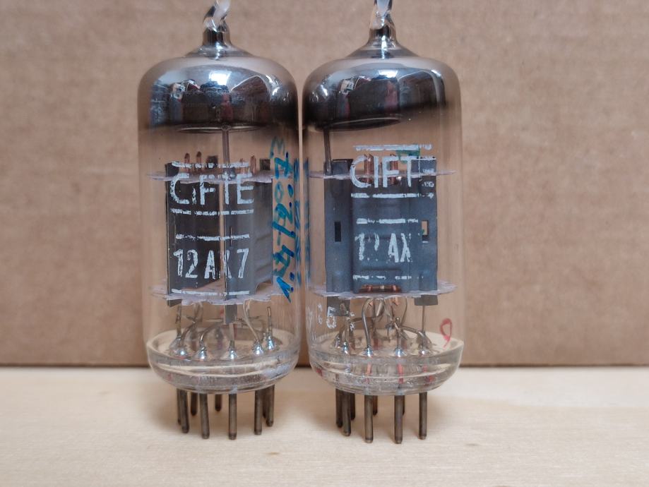 Rijetke ECC83 (12AX7) cijevi francuskog proizvođača CIFTE (dio grupacije Philips).