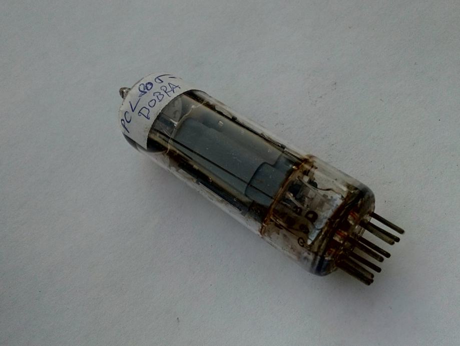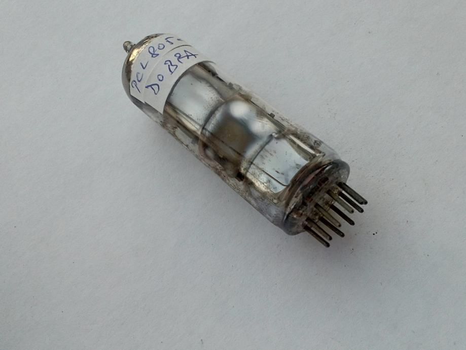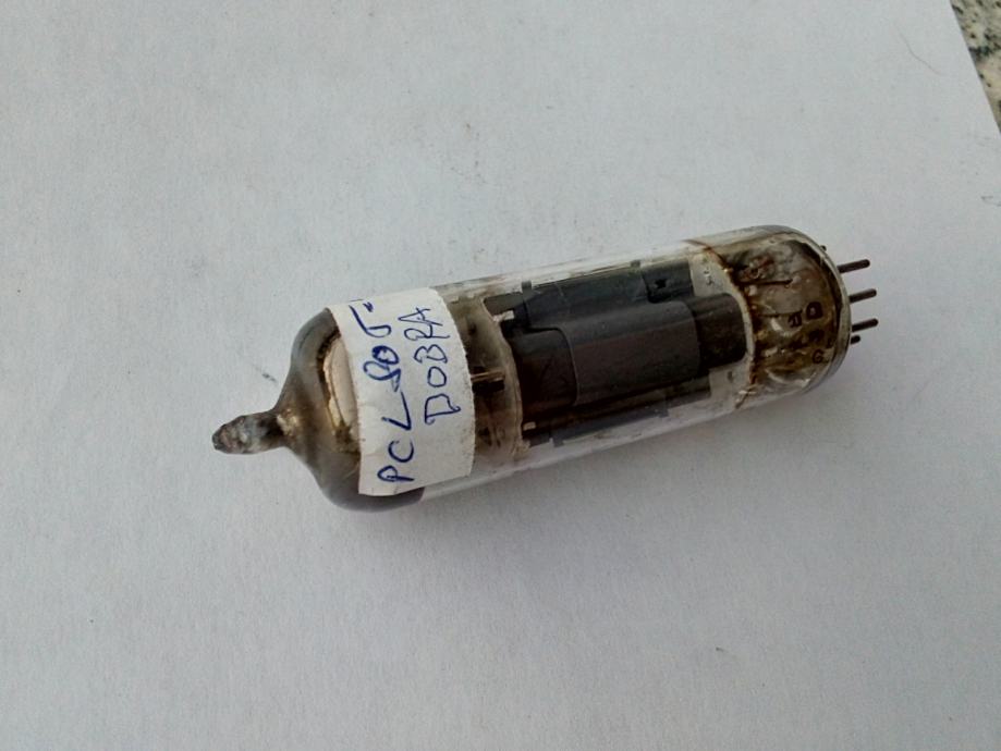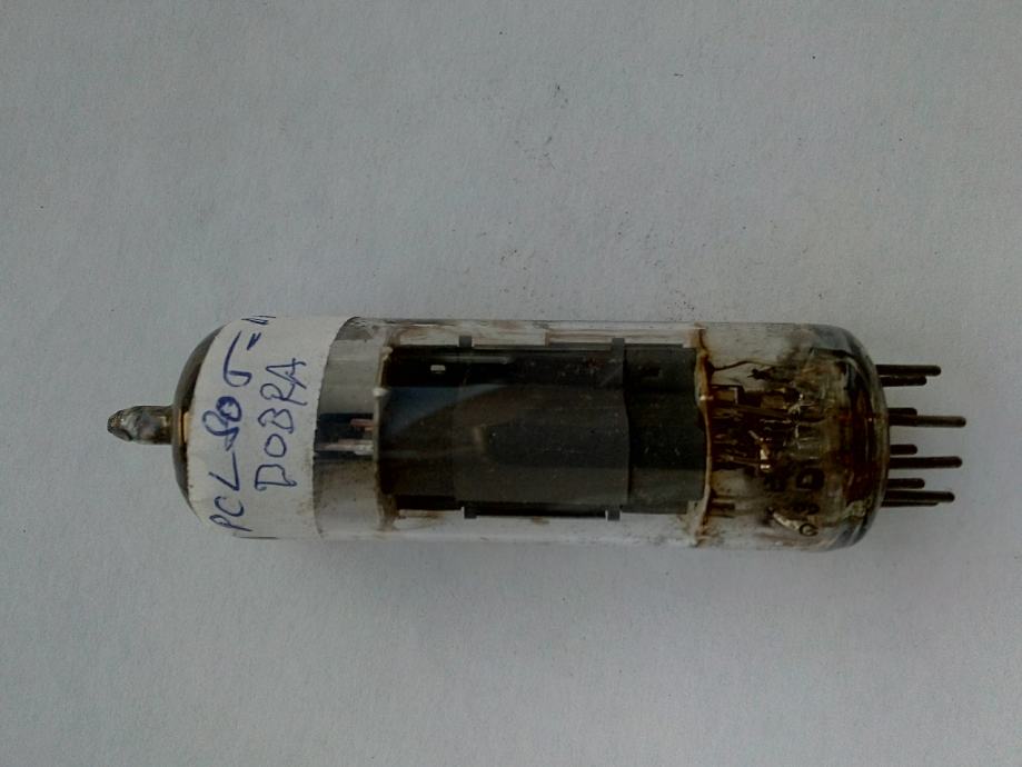 Dvije ispravne TV lampe Ei PCL 805, provjerene na Funke W 19 testeru, koji kod jedne pokazuje 54 mA za pentodu i 8 mA za triodu, a kod druge 48 mA za pentodu i 8 mA za triodu, što je na pola puta od novog do istrošenog stanja.