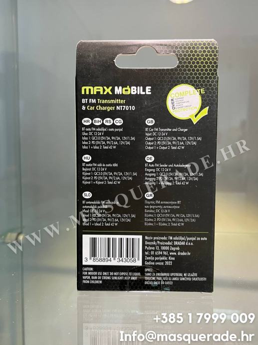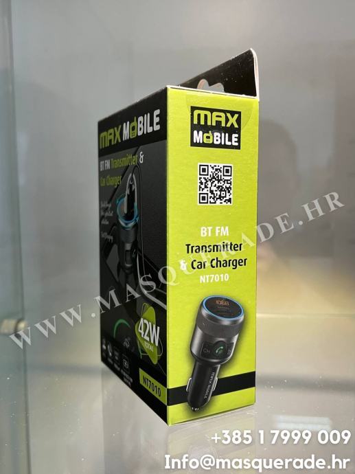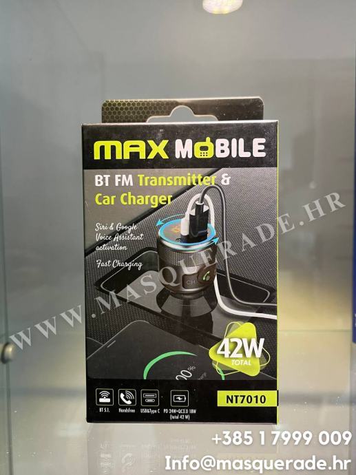 Maxmobile nt7010,total 42w -FM transmitter i Auto punjač , Type C/USB,Bluetooth,NOVO RAČUN,garancija.Kupljen u 12mj 2025 ,korišten 1 tjedan(radi odlično) ,pošto sam dobio novi radio koji u sebi ima Bluetooth transmiter mi više ne treba.Zapakiran je u originalnoj kutiji sa računom (30 eura) i garancijom,sada prodajem u pola cijene -15 eura.