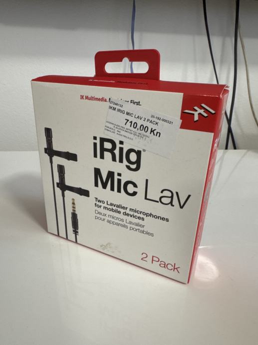 Bilo da ste snimatelj, novinar ili podcaster i na terenu želite snimiti visokokvalitetan zvuk uz praktičnost hands-free lavalier mikrofona, iRig Mic Lav lavailer mikrofon je rješenje za vas. Radi se o profesionalnom mikrofonu za iPhone, iPad, iPod touch i Android uređaje. iRig Mic Lav se može povezati u lanac. To znači da možete na isti uređaj spojiti dva iRig Mic Lav mikrofona. Svaki iRig Mic Lav bilježi visokokvalitetni zvuk zahvaljujući kondenzatorskoj kapsuli kugličaste usmjerne karakteristike i spužvastom pop filteru. Praktičnost snimanja je poboljšana jer je tu izlaz za slušalice, sigurnosnoj kopči za pričvrščivanje mikrofona, izdašnoj duljini kabela i dizajnu koji obećava dugotrajno korištenje. Bundle iRig Mic Lav 2 je paket u kojem dolaze dva iRig Mic Lav mikrofona, tako da možete snimati dva izvora zvuka u isto vrijeme pomoću jedinstvene značajke lančanog povezivanja.