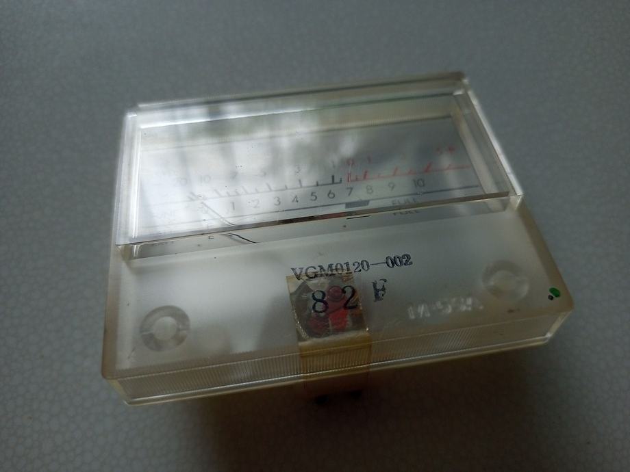 Prodajem instrument koji je ujedno VU/db metar, pokazivač jakosti radijskog signala i stanja napunjenosti baterije. Nisam zabilježio ni naziv proizvođača niti naziv modela uređaja kojemu je pripadalo. Ispravan je, a provjeren je analognim multimetrom. Fotografije priložene uz oglas prikazuju ovdje oglašeni predmet. Mjere prozora, odnosno onoga što se vidi kada je ugrađen su 65x32 mm, a vanjske mjere predmeta 70x54 mm.
