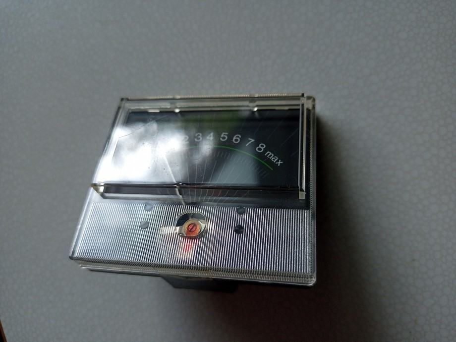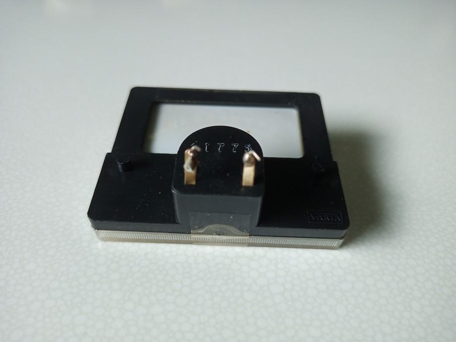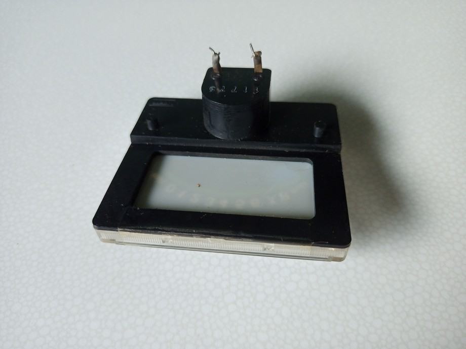 Nisam zabilježio ni naziv proizvođača niti naziv modela uređaja kojemu je pripadao. Ispravan je, a provjeren je analognim multimetrom. Fotografije priložene uz oglas prikazuju ovdje oglašeni predmet. Mjere prozora, odnosno onoga što se vidi kada je ugrađen su 50x28 mm, a vanjske mjere predmeta 55x48 mm.