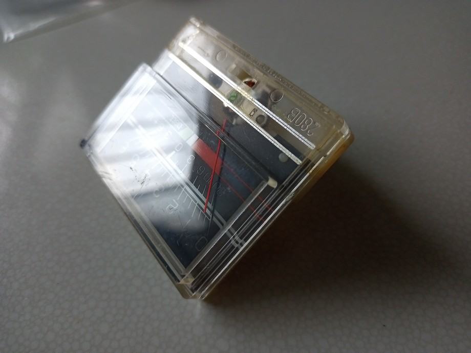Prodajem instrument koji je ujedno VU/db metar, pokazivač jakosti radijskog signala i pokazivač stanja napunjenosti baterije. Nisam zabilježio ni naziv proizvođača niti naziv modela uređaja kojemu je pripadao. Ispravan je, a provjeren je analognim multimetrom. Fotografije priložene uz oglas prikazuju ovdje oglašeni predmet. Mjere prozora, odnosno onoga što se vidi kada je ugrađen su 50x28 mm, a vanjske mjere predmeta 54x48 mm.