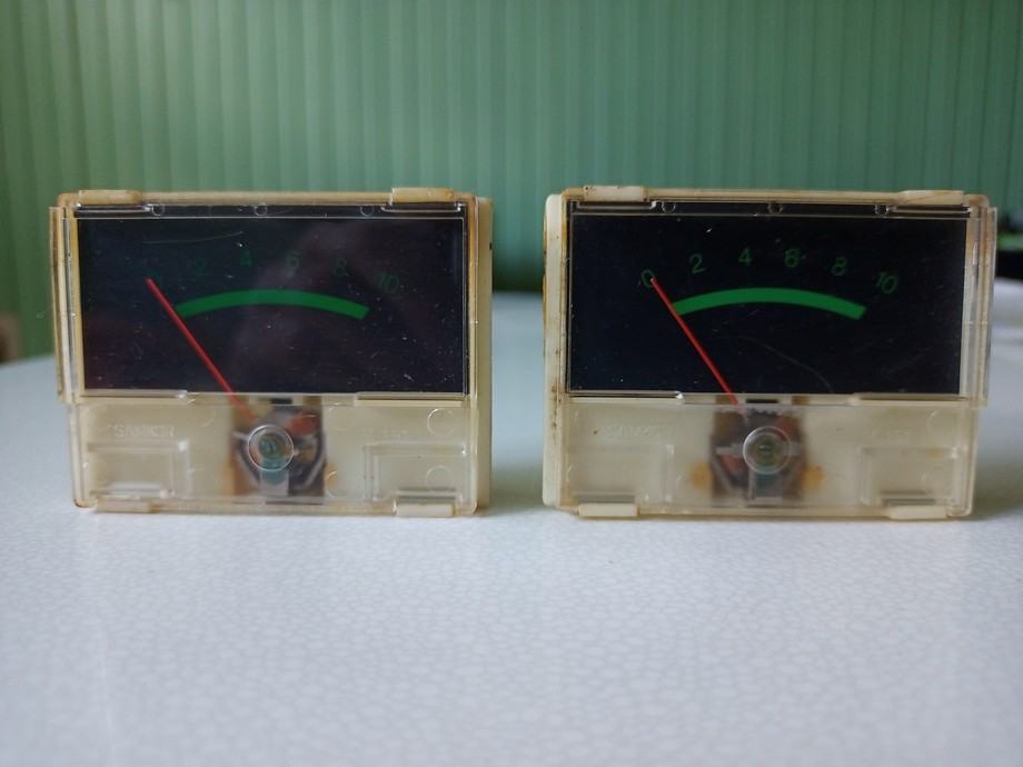 U paru za 10 € ili pojedinačno po 7 €, prodajem instrumente koji pokazuju jačinu radijskog signala. Nisam zabilježio ni naziv proizvođača niti naziv modela uređaja kojemu su pripadali. Ispravni su, a provjereni su analognim multimetrom. Fotografije priložene uz oglas prikazuju ovdje oglašene predmete. Mjere prozora, odnosno onoga što se vidi kada su ugrađeni su 60x29 mm (60.1 x 27.92), a mjere bijelog okvira su 64.27x46.29 mm. Nedostaju lampice i nosači lampica.
