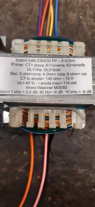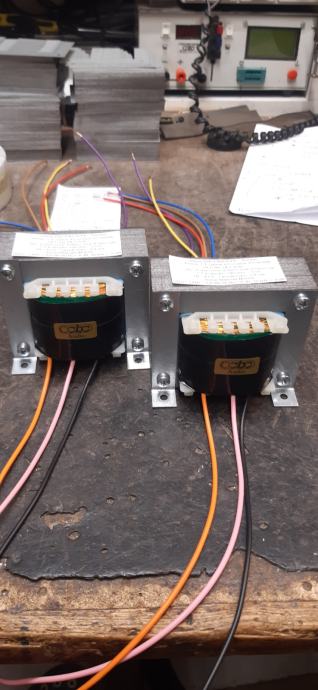 Prodajem par transformatora za cijevna pojačala firme CBC-Audio! PP trafo 8 kOhm impendance primara i 4 i 8 oma sekundar! Trafci su novi, nekorišteni. Imaju ultralinearni izlaz na 43 %. Svi podaci napisani su na naljepnicama! Za sve ostale upite, molim, slobodno nazovite ili pošaljite poruku; Viber; Whatsup; messenger ili mail! CIJENA JE ZA KOMAD!