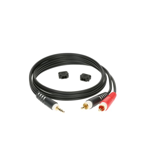 TRS 3,5 mm - 2x RCA Y kabel, lagan, fleksibilan i kompatibilan s bilo kojim audio uređajem s 3,5 mm ženskim priključkom. Pozlaćeni kontakti, 1m duljina.