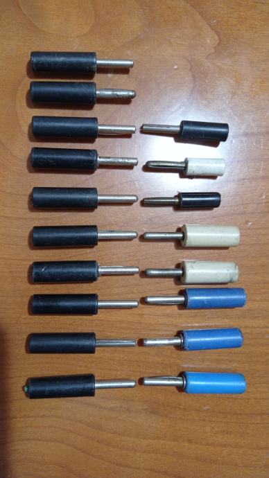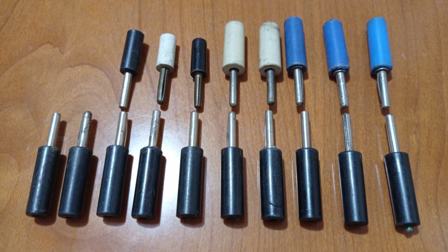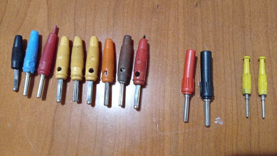 Banana konektori, 4mm, rabljeni, cijena 1 € po komadu.