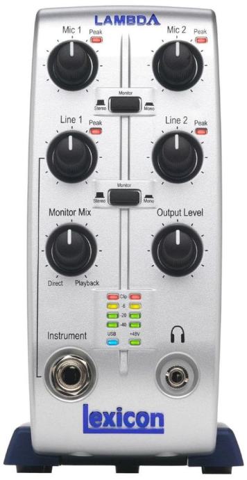 Lexicon LAMBDA je najlakši način za snimanje s računala. Samo dodajte mikrofon, računalo i glazbenu inspiraciju. Gdje god možete ponijeti svoje prijenosno računalo, Lambda vam omogućuje istovremeno snimanje i vokala i pratećeg instrumenta (ili dva pjevača/dva instrumenta). Lambda ima dva balansirana mikrofonska ulaza studijske kvalitete s fantomskim napajanjem za profesionalne kondenzatorske mikrofone i TRS umetke koji vam omogućuju dodavanje vanjske opreme poput kompresora ili ekvilajzera. Dva linijska ulaza predviđena su za dodavanje klavijatura, ritam mašina, gramofona putem phono pred-pojačala ili unaprijed snimljenih pratećih pjesama s CD ili MP3 playera. Uključen je zaseban ulaz visoke impedancije na prednjoj ploči tako da možete izravno priključiti svoju električnu gitaru ili bas. Putem posebnog priključka za slušalice možete pratiti dok snimate, slušati prateću glazbu ili kliktati pjesmu tijekom snimanja ili slušati pjesme koje se reproduciraju s vašeg računala. Balansirani analogni linijski izlazi omogućuju vam spajanje na aktivne monitorske zvučnike ili mastering deck.
