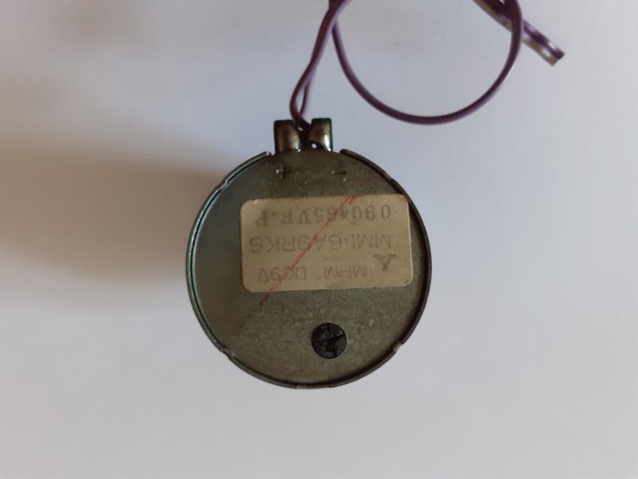 Skinut je sa neispravnog radio-kasetofona Philips D-8134. Radi, ali ne znam da li je ispravan, a smjer vrtnje nisam zabilježio. Ako kupac bude tvrdio da je neispravan, vratit ću mu novac za predmet, ali ne i novac za dostavu. Promjer oklopa motora je 39 mm, visina oklopa 35.3 mm, promjer osovine 2 mm, a dijametralni (dijagonalni) razmak središta rupa za vijke je 26 mm.