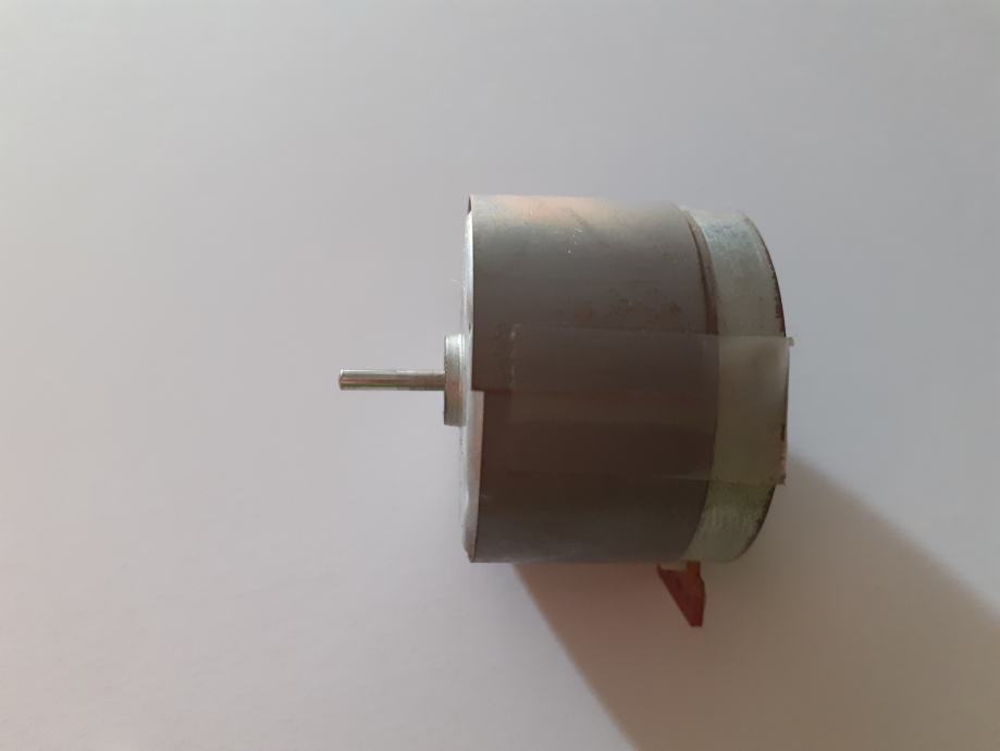 Skinut je sa kasetofonske jedinice koja je bila dio glazbenog centra Pioneer RX-Z71L. Motor radi, ali taj glazbeni centar nije proizvodio zvuk pa nisam mogao zaključiti da li je potpuno ispravan ili nije. Ako kupac bude tvrdio da je neispravan, vratit ću mu novac za predmet, ali ne i za dostavu. Vrti se u smjeru kretanja kazaljke sata (CW, clockwise), a radi pri naponu 12 Volta istosmjerne struje. Promjer oklopa motora je 33.2 mm, visina oklopa 25.3 mm, promjer osovine 2 mm, duljina osovine 9.5 mm, a dijametralni (dijagonalni) razmak rupa za vijke je 26 mm.