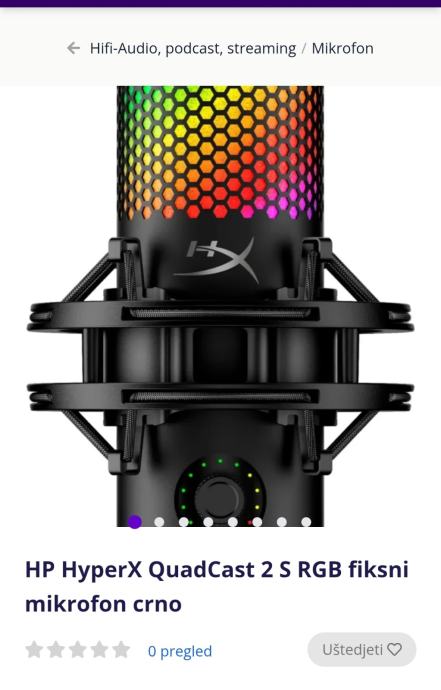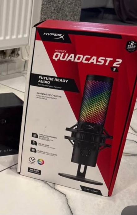 Prodajem HyperX QuadCast 2 S RGB fiksni mikrofon u crnoj boji. Mikrofon je potpuno nov i dolazi u originalnom pakiranju. Ima RGB osvjetljenje s više boja za personalizaciju radnog prostora. Namijenjen je za streamanje, podcaste i snimanje zvuka visokog kvaliteta. Uključuje protušumni sustav i podešavanje osjetljivosti. Idealan za kreatore sadržaja koji trebaju profesionalan zvuk uz vizualni dojam.