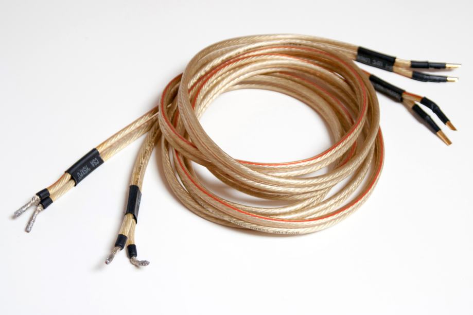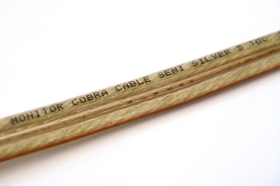 Prodajem zvučnički kabel Monitor Cobra Cable Semi Silver 5, duljina 2 x 185 cm, presjek 4 mm2, sa zvučničke strane terminiran Oelbach pozlaćenim bananama, sa strane pojačala goli kabel polemljen srebrnim lemom.